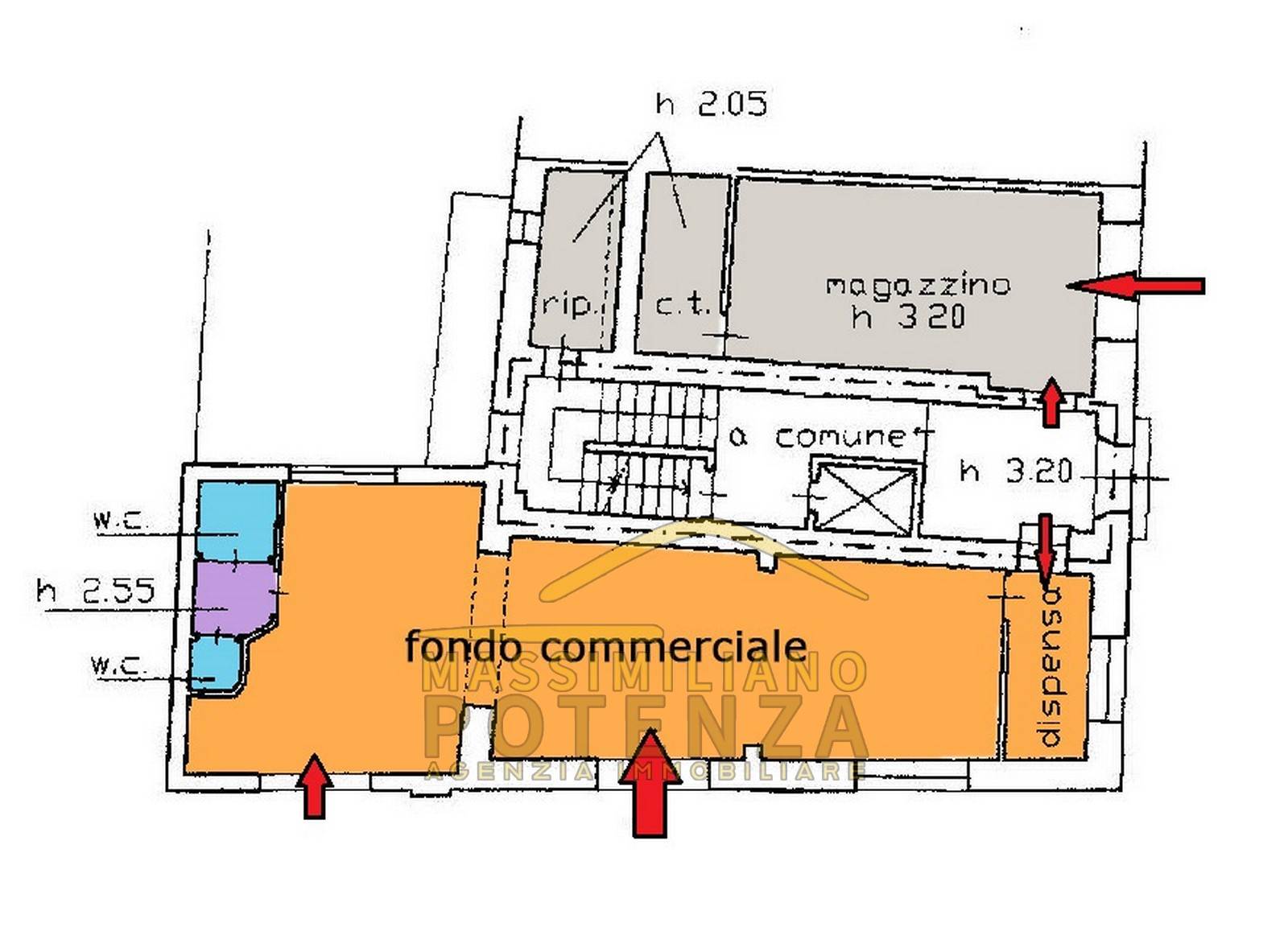 Il negozio si presenta in buono stato, è dotato di doppio wc, dispensa e ampio magazzino/deposito.